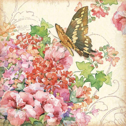 Geranium and Butterflies Gold Ornate Wood Framed Art Print with Double Matting by Paton, Julie