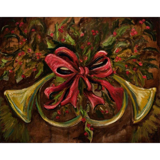 Christmas Red Ribbon Gold Ornate Wood Framed Art Print with Double Matting by Monahan, Jodi