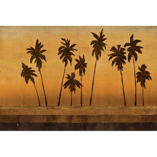 Sunset Palms II Gold Ornate Wood Framed Art Print with Double Matting by Martin, Cheryl