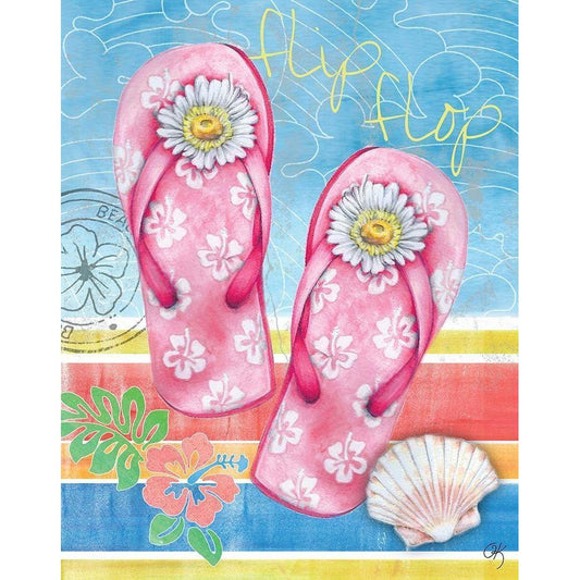 Summer Splash Flip Flops Gold Ornate Wood Framed Art Print with Double Matting by K, Onna