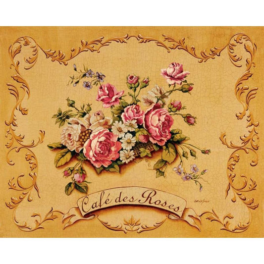 Cafe des Roses Gold Ornate Wood Framed Art Print with Double Matting by Jones, Catherine