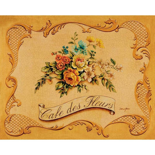 Cafe des Fleurs Gold Ornate Wood Framed Art Print with Double Matting by Jones, Catherine