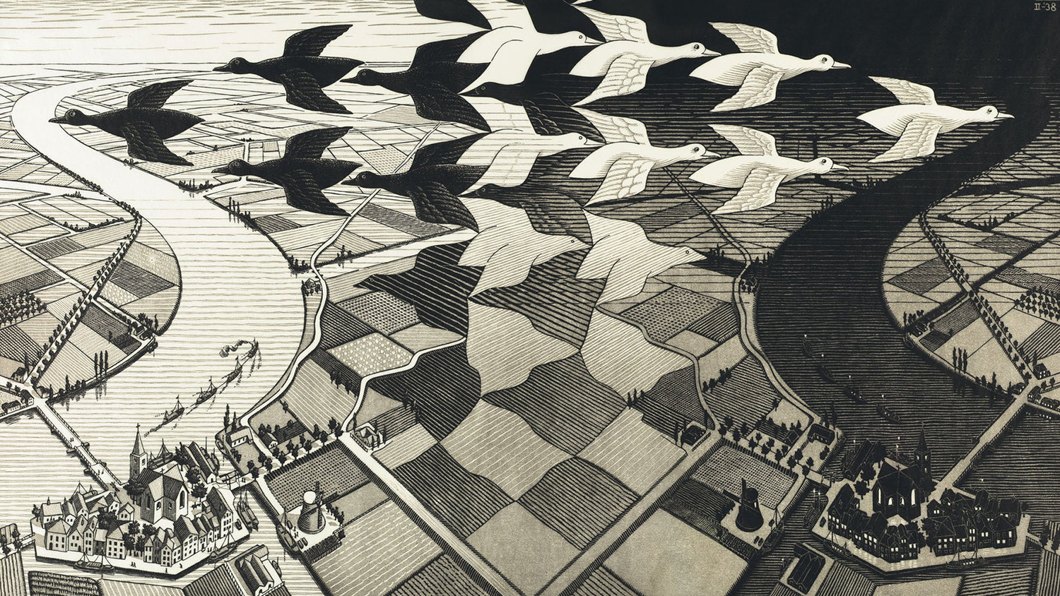 Relativity 20x20 Black Ornate Wood Framed Art Print Poster with Double Matting by Escher, M.C.