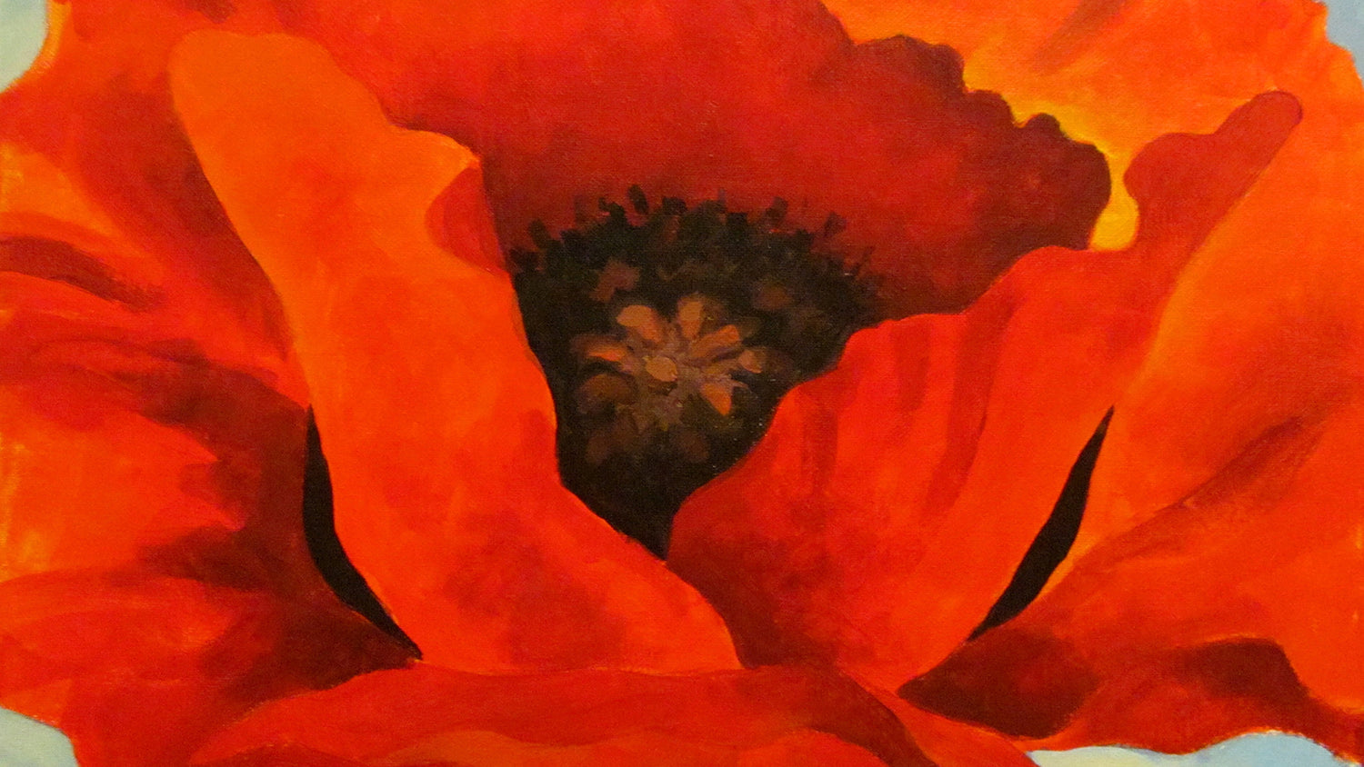 Red Poppy 24x20 Black Modern Wood Framed Art Print Poster by O'Keeffe, Georgia