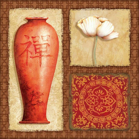 Oriental Collage IV Black Ornate Wood Framed Art Print with Double Matting by Corbin, Delphine