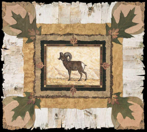 Big Horn Ram Black Ornate Wood Framed Art Print with Double Matting by Gladding, Pamela