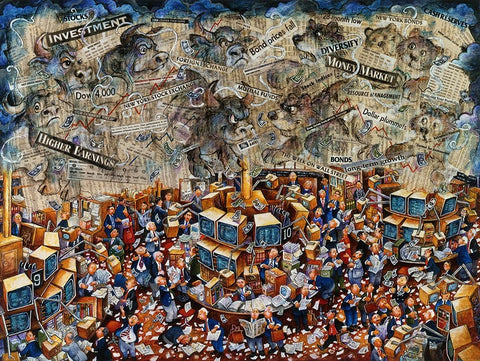 Week On Wall Street Black Ornate Wood Framed Art Print with Double Matting by Bell, Bill