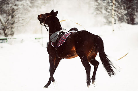 Race in the Snow Black Ornate Wood Framed Art Print with Double Matting by Jenny Rainbow Fine Art