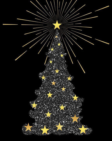 Park Avenue Starry Christmas Tree Black Ornate Wood Framed Art Print with Double Matting by Lavoie, Tina