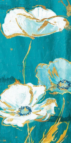 Teal Gold Florals Mate Three Black Ornate Wood Framed Art Print with Double Matting by Grey, Jace