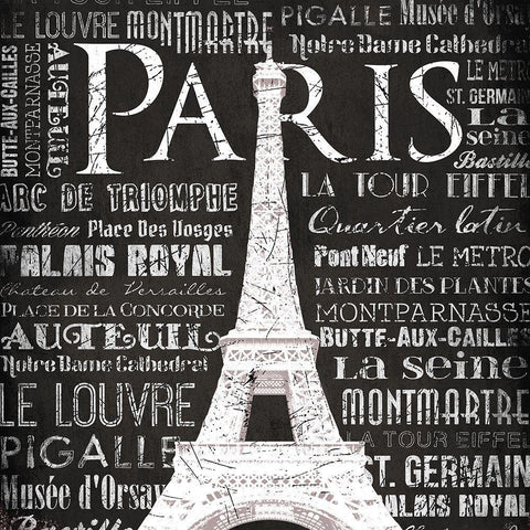 Paris Eiffel Black Ornate Wood Framed Art Print with Double Matting by Grey, Jace