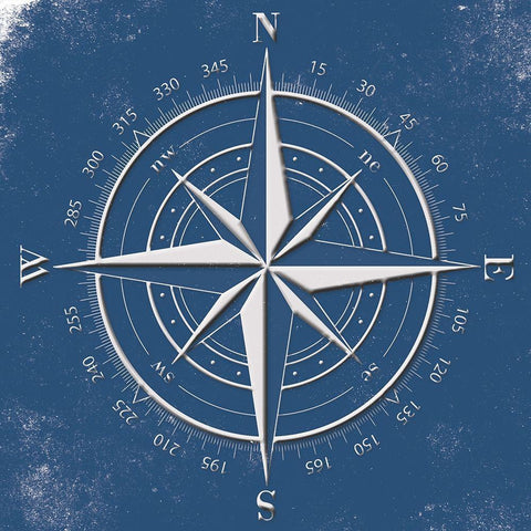 Coastal Pop Compass Black Ornate Wood Framed Art Print with Double Matting by Grey, Jace
