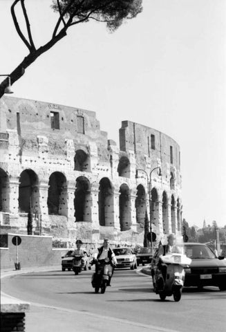 Colessium With Moped Rome Black Ornate Wood Framed Art Print with Double Matting by Grey, Jace