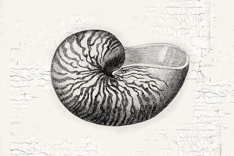Shell Black Ornate Wood Framed Art Print with Double Matting by Lula Bijoux and Company