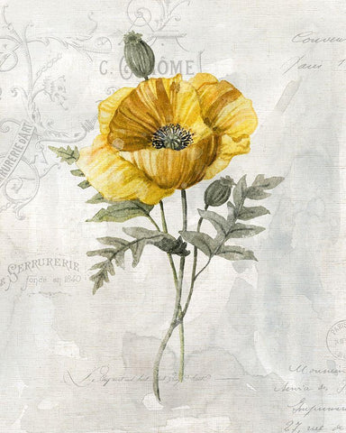 Canaray Linen Poppy Black Ornate Wood Framed Art Print with Double Matting by Robinson, Carol
