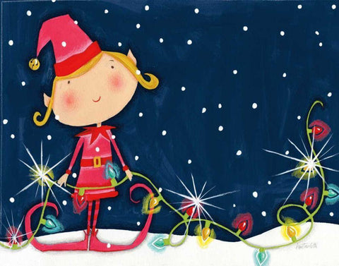 Bright Christmas Lights Elf Blue Black Ornate Wood Framed Art Print with Double Matting by Tavoletti, Anne