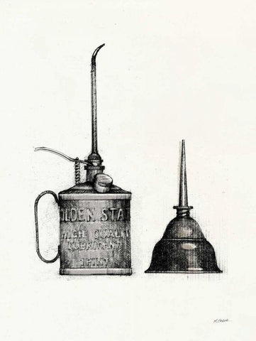 Oil Cans with Color Crop Black Ornate Wood Framed Art Print with Double Matting by Schick, Mike