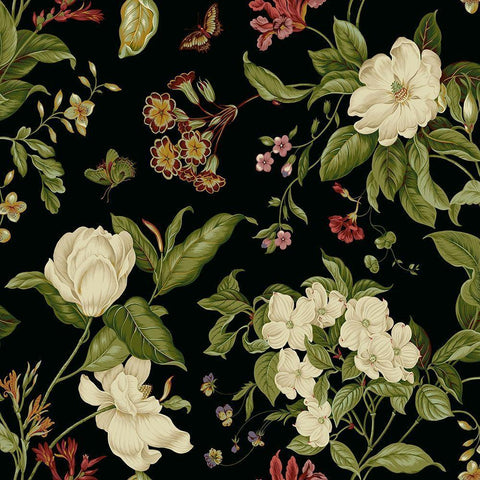 Garden Floral on Black I Black Ornate Wood Framed Art Print with Double Matting by Unknown