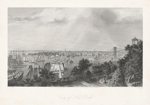 City of New York Black Ornate Wood Framed Art Print with Double Matting by Bryant, William Cullen
