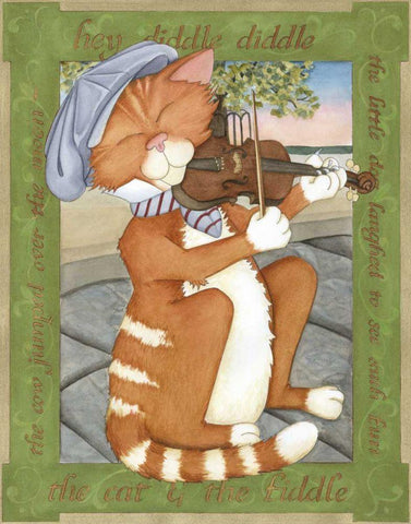 The Cat and The Fiddle Black Ornate Wood Framed Art Print with Double Matting by Friel, Tara