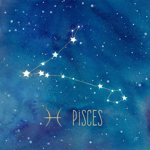 Star Sign Pisces Black Ornate Wood Framed Art Print with Double Matting by Coulter, Cynthia