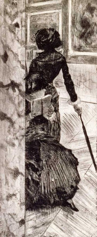 Mary Cassatt at the Louvre Black Ornate Wood Framed Art Print with Double Matting by Degas, Edgar