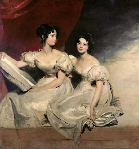 A Double Portrait of The Fullerton Sisters Black Ornate Wood Framed Art Print with Double Matting by Lawrence, Sir Thomas