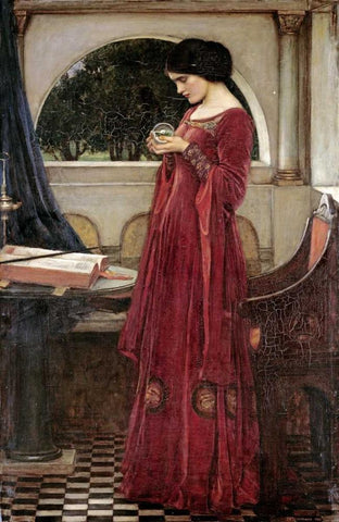 The Crystal Ball Black Ornate Wood Framed Art Print with Double Matting by Waterhouse, John William