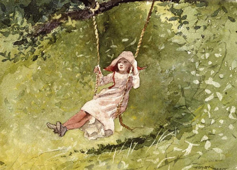 Girl on a Swing Black Ornate Wood Framed Art Print with Double Matting by Homer, Winslow