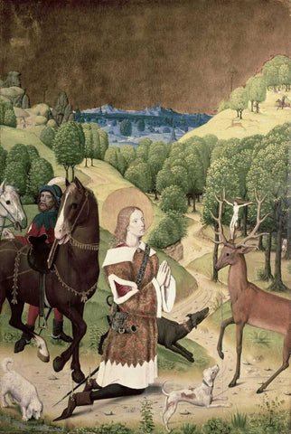 Conversion of St. Hubert Black Ornate Wood Framed Art Print with Double Matting by Master of Werden