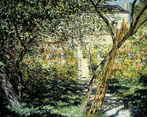 The Garden of Vetheuil (Le Jardin de Vetheuil) Black Ornate Wood Framed Art Print with Double Matting by Monet, Claude