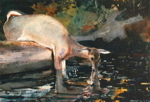 Deer Drinking Black Ornate Wood Framed Art Print with Double Matting by Homer, Winslow
