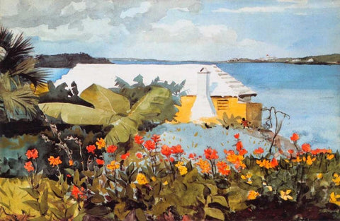 Flower Garden And Bungalow Bermuda Black Ornate Wood Framed Art Print with Double Matting by Homer, Winslow