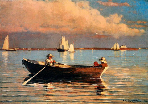 Glouchester Harbor Black Ornate Wood Framed Art Print with Double Matting by Homer, Winslow