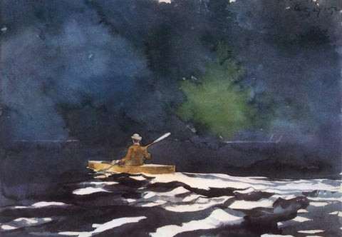 Paddling At Dusk Black Ornate Wood Framed Art Print with Double Matting by Homer, Winslow