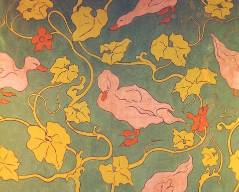 Les Canards Et Les Feuilles Black Ornate Wood Framed Art Print with Double Matting by Ranson, Paul