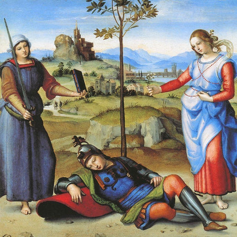 Dream Of Scipio The Elder Black Ornate Wood Framed Art Print with Double Matting by Raphael