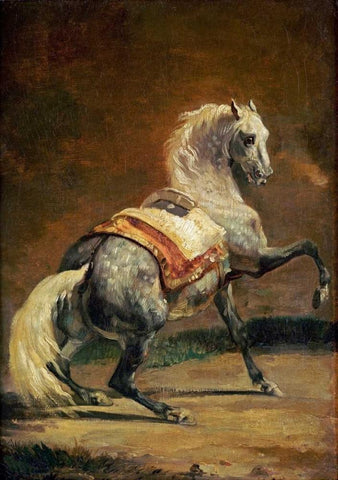 Dappled Grey Horse - Reversed Black Ornate Wood Framed Art Print with Double Matting by Gericault, Theodore