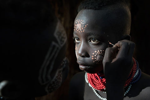 Ethiopian Karo Tribes Black Ornate Wood Framed Art Print with Double Matting by Intarob, Sarawut