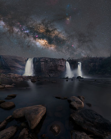 Athirapally Black Ornate Wood Framed Art Print with Double Matting by Chander, Vikas
