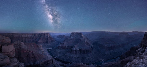 Grand Canyon And Milky Way Black Ornate Wood Framed Art Print with Double Matting by Wei, Willa