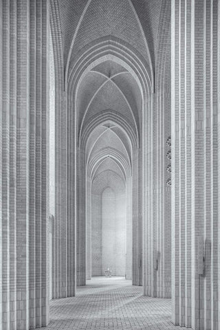 Grundtvigs Kirke Black Ornate Wood Framed Art Print with Double Matting by Fleckenstein, Martin