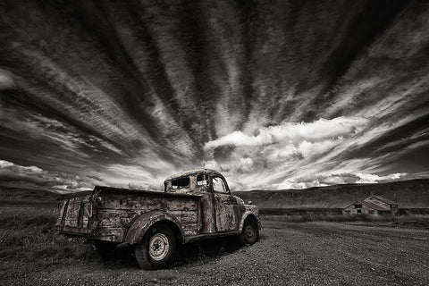 Old Truck (Mono) Black Ornate Wood Framed Art Print with Double Matting by H. Ingibergsson, Torsteinn