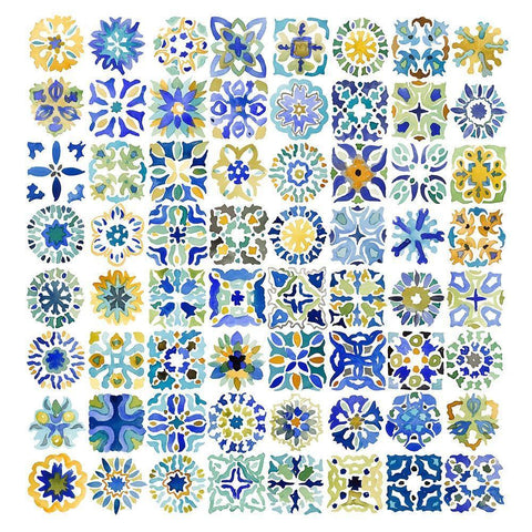 WATERCOLOR TRADITIONAL MOROCCAN TILES Black Ornate Wood Framed Art Print with Double Matting by Atelier B Art Studio