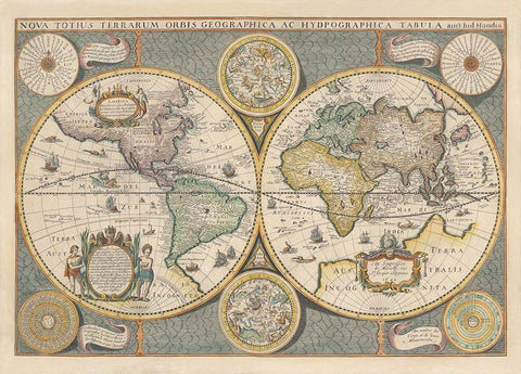 Nova Totius Terrarium, 1642 Black Ornate Wood Framed Art Print with Double Matting by Hondius, Jodocus