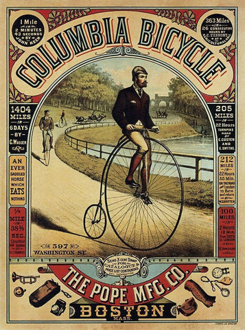 Columbia Bicycle Black Ornate Wood Framed Art Print with Double Matting by Anon
