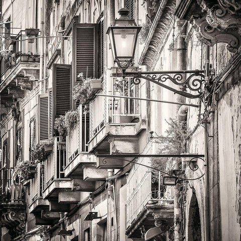 Mediterranean Street Scene Black Ornate Wood Framed Art Print with Double Matting by Molcan, M.