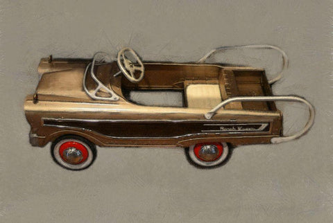Ranch Wagon Pedal Car Black Ornate Wood Framed Art Print with Double Matting by Calkins, Michelle
