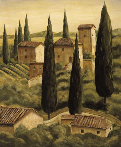 Tuscan Hillside II Black Ornate Wood Framed Art Print with Double Matting by Moretti, Maurizio