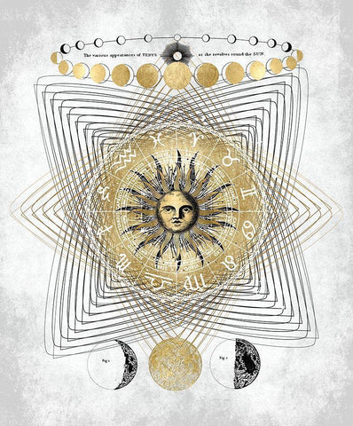 Zodiac Sun I Black Ornate Wood Framed Art Print with Double Matting by Jeffries, Oliver